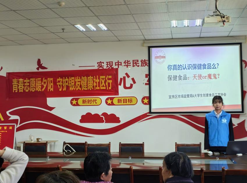 10月30日,太阳成官网大学生创意食品工艺协会携手市监督局举办了一场意义非凡的讲座——“科学认知保健品健康饮食享生活”。此举贯彻落实《全市保健食品科普宣传“守护银发健康”社区行活动方案>的通知》。