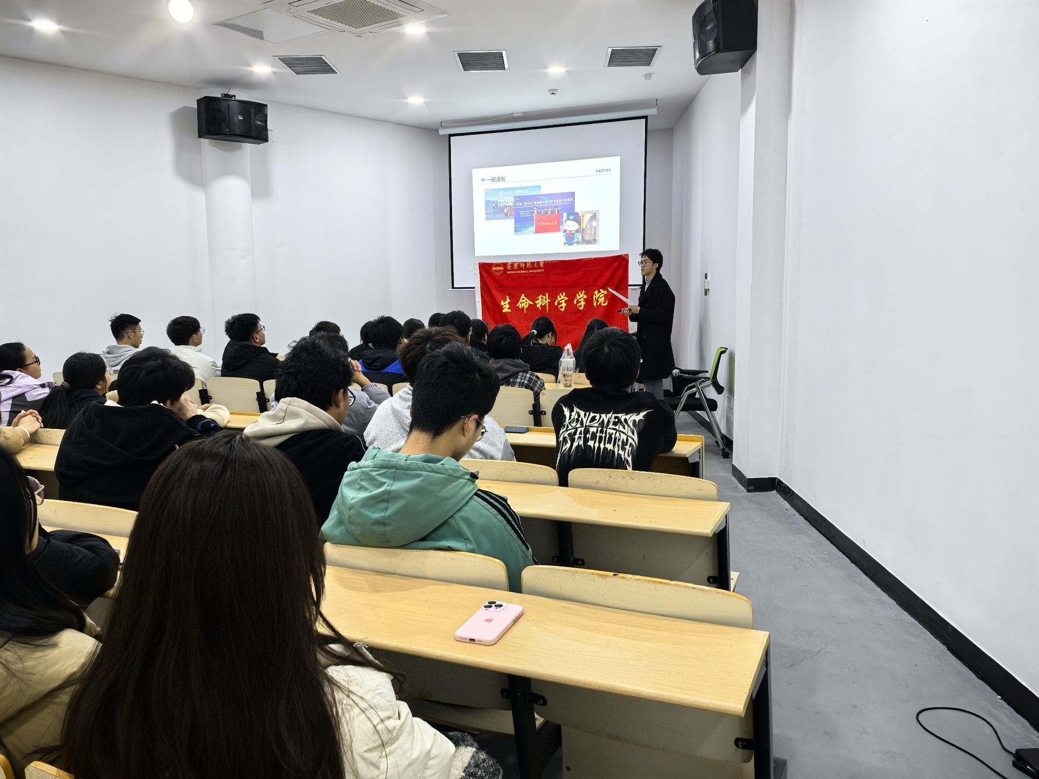 11月27日,生命科学学院在“一站式”学生社区阶梯教室开展“创新创业经验交流会”,进一步激发同学们的创新创业热情,推动大学生做好职业规划。获得第十四届“挑战杯”秦创原中国大学生创业计划竞赛金奖团队成员欧雨乐、第十七届全国大学生创新年会最佳项目奖团队成员张雯菁应邀参加交流会作经验分享,近百名同学参会。