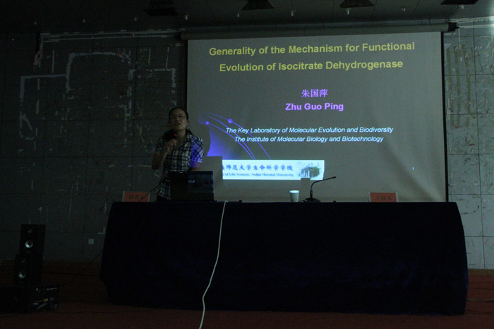 当天下午,在我校菱湖校区图书馆学术报告厅,朱国萍教授作题为 “异柠檬酸脱氢酶功能进化机制的普遍性”学术报告。朱国萍教授结合自身近年来主持的研究课题和研究成果,介绍了异柠檬酸脱氢酸酶功能进化的具体情况和异柠檬酸脱氢酶的功能机制。