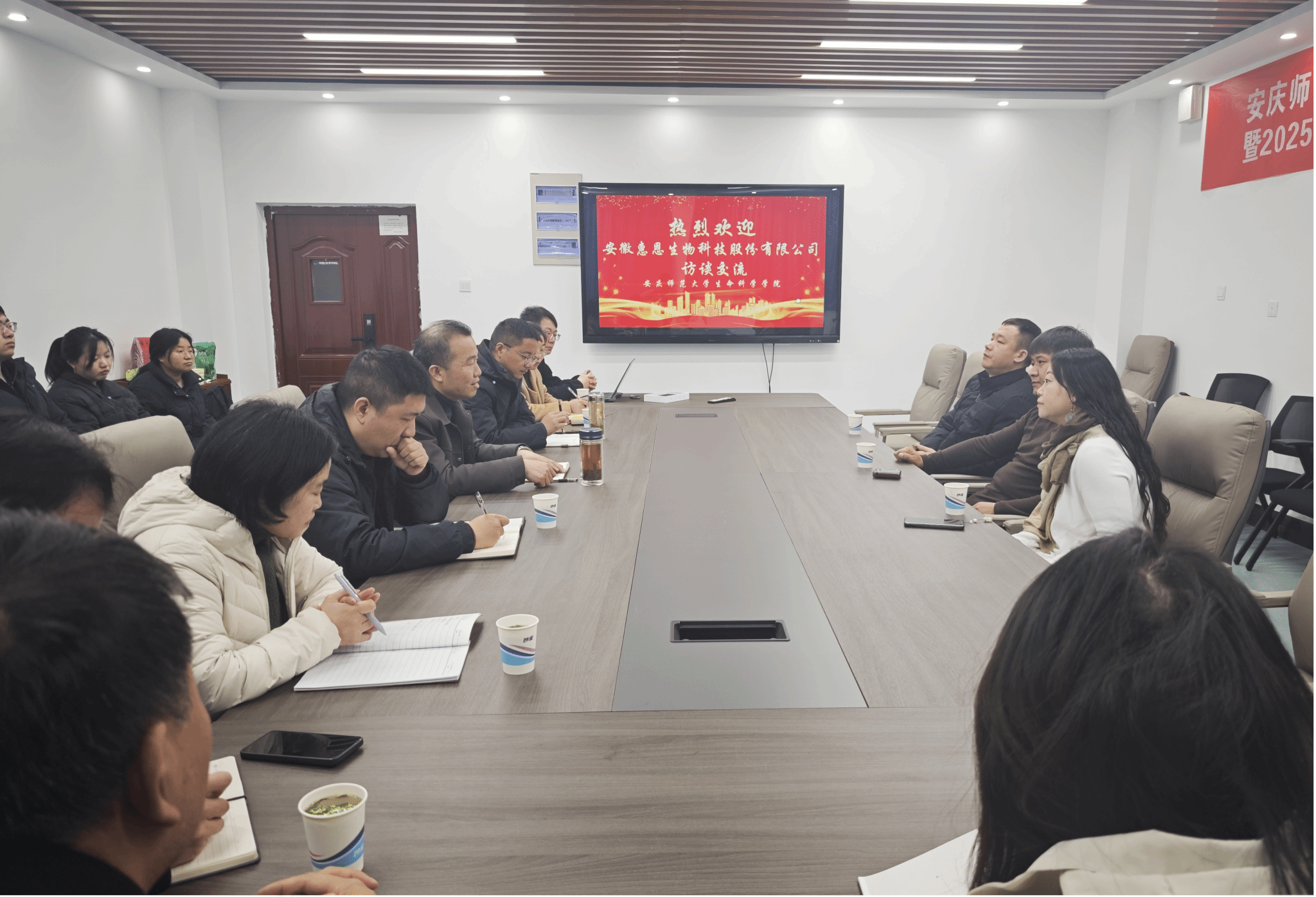 1月15日,安徽惠恩生物科技股份有限公司总经理田志刚一行来我院交流座谈,学院院长吴彦、副院长李从虎出席座谈会,生物技术领域多位骨干教师参加座谈。