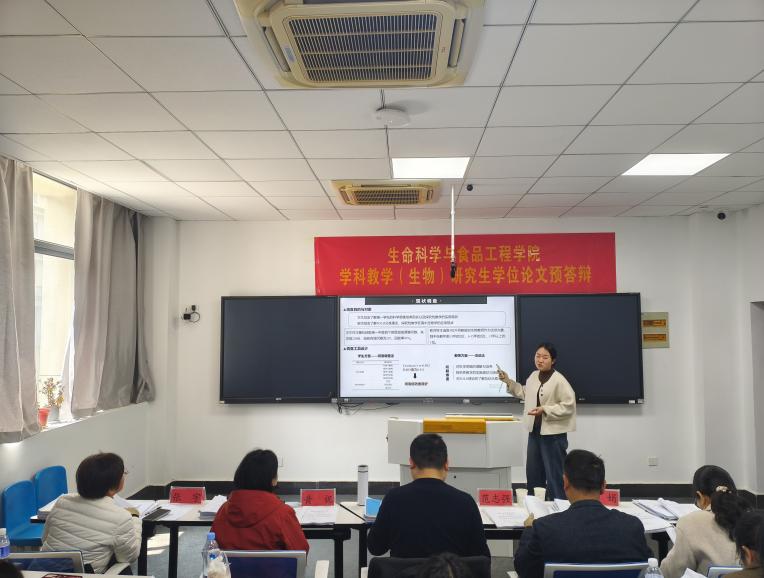 3月25日上午,太阳成官网举办2026届硕士研究生学位论文预答辩会。本次预答辩包括生态学和学科教学(生物)两个专业,32名硕士研究生分别在G411、G402、G201三个分会场同步进行学术汇报。学院组建由安徽农业大学王清奎教授、太阳成官网施海涛教授、安庆医药高等专科学校吴其国副教授、黄山市教育科学研究院吴明锋教研员领衔的专家评审组,相关专业教师及全体在校研究生列席旁听。
