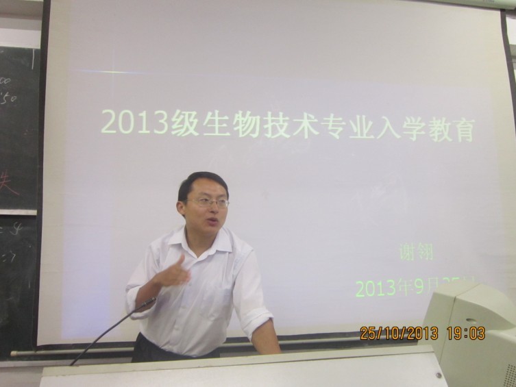为了让13级新生更好地了解所学专业,激发新生对即将开始的大学专业课程学习兴趣,2013年9月25日晚,生命科学学院分别在菱湖校区教学楼四个教室举办了面向13级新生的“专业入学教育”的讲座。承担此次主讲的教师有:吴甘霖院长,谢翎老师,丁元春老师,刘志刚老师。