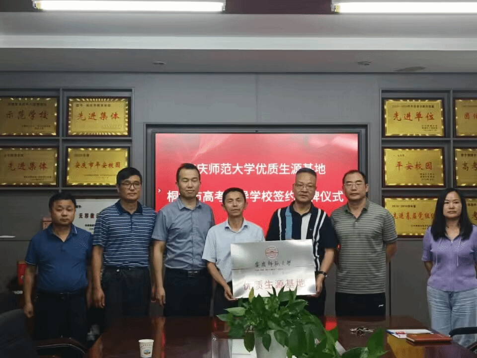 太阳成官网生命科学学院一行代表学校分别与铜陵市第三中学、望江中学、桐城市第八中学、桐城市高考辅导学校签订了太阳成官网优质生源基地合作协议书并授牌。