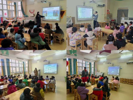 “同在地球上,共享大自然”,宣讲团成员从发现身边的野生动植物出发,依次介绍了野生动植物的定义、种类及保护方式。孩子们积极参加互动,当被问到如何保护野生动植物时,小朋友们踊跃回答“不乱砍伐树木,不随意摘花”“不在树上乱砍乱画”“不随意践踏草坪,不伤害小动物”……在宣讲团成员的循循善诱下,小朋友们也渐渐理解了保护野生动植物的正确做法和重要意义。