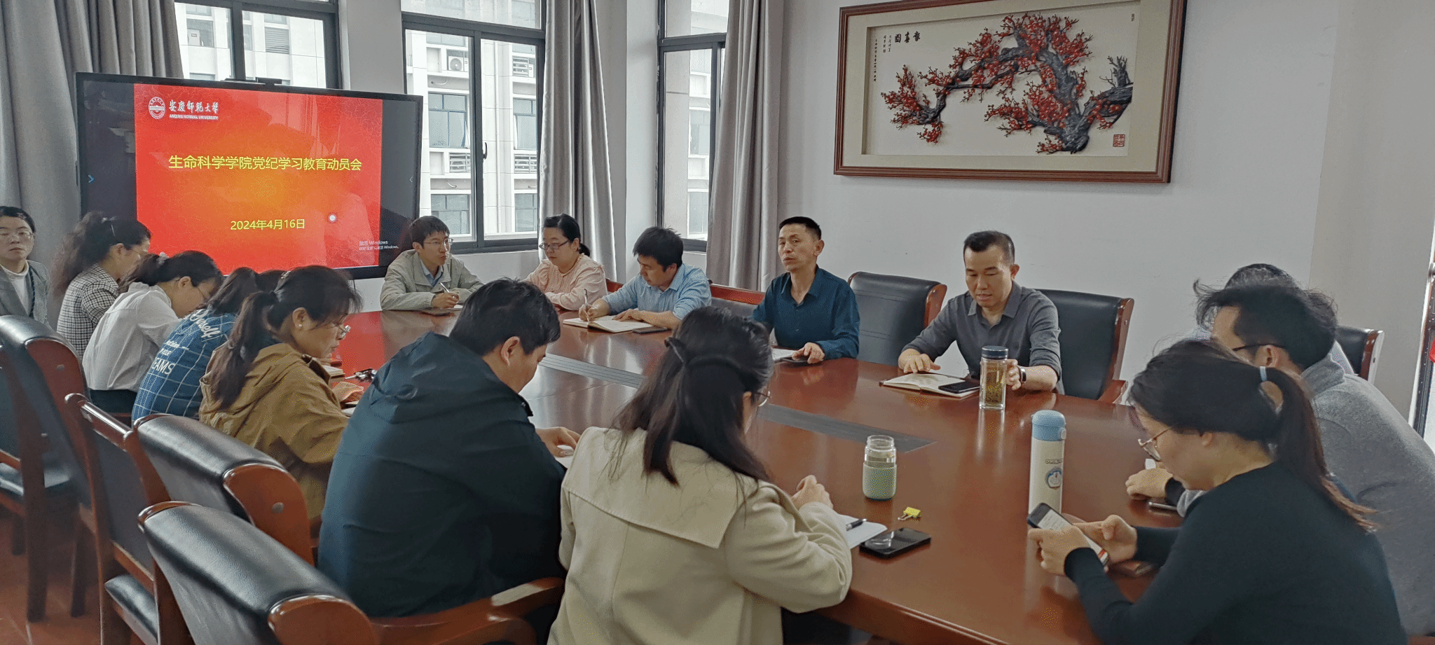 4月17日,生命科学学院召开党纪学习教育动员部署会,学院领导班子成员、党委委员、纪委委员、党支部书记参加会议。