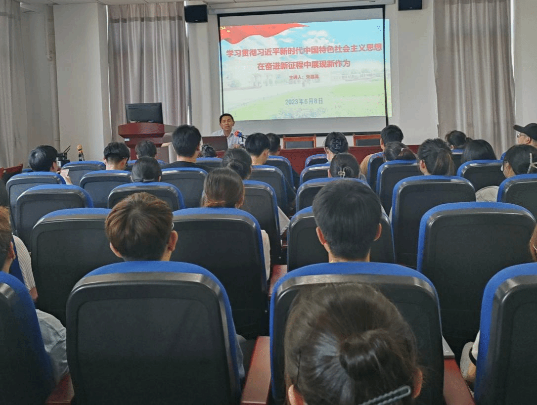 6月8日,生命科学学院党委书记朱昌流在G202以“学习贯彻习近平新时代中国特色社会主义思想 在奋进新征程中展现新作为”为主题讲授专题党课。学院园林教研室党支部、生态学教研室党支部全体教师党员、部分学生党员代表、发展对象和入党积极分子代表共50余人参加了此次党课学习。