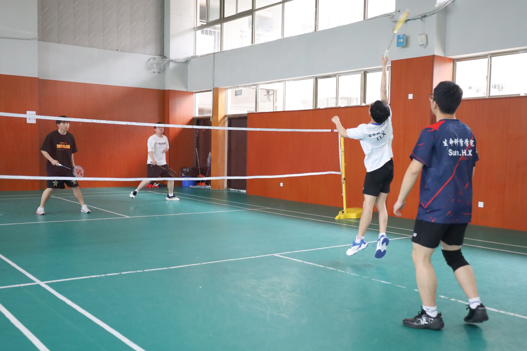 4月13日,生命科学学院于体育馆三楼羽毛球馆举办第三届“飞羽杯”羽毛球师生友谊赛。本次比赛分为男子单打、女子单打和团体赛三个项目,学院教师、研究生和本科生近60人参加比赛。