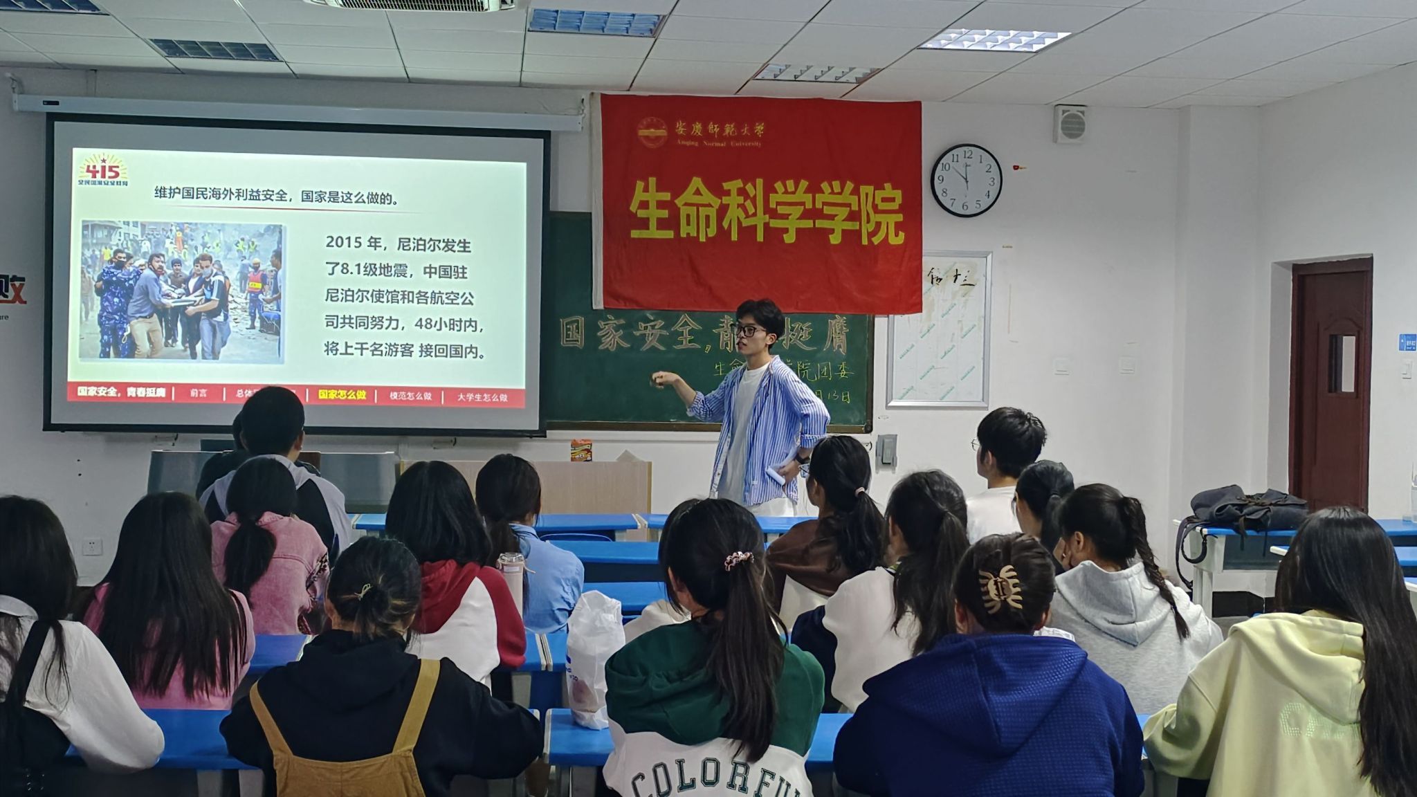 4月13日,生命科学学院在G103举办“国家安全 青春挺膺”主题活动,进一步做好国家安全教育宣传,近百名同学参加活动。