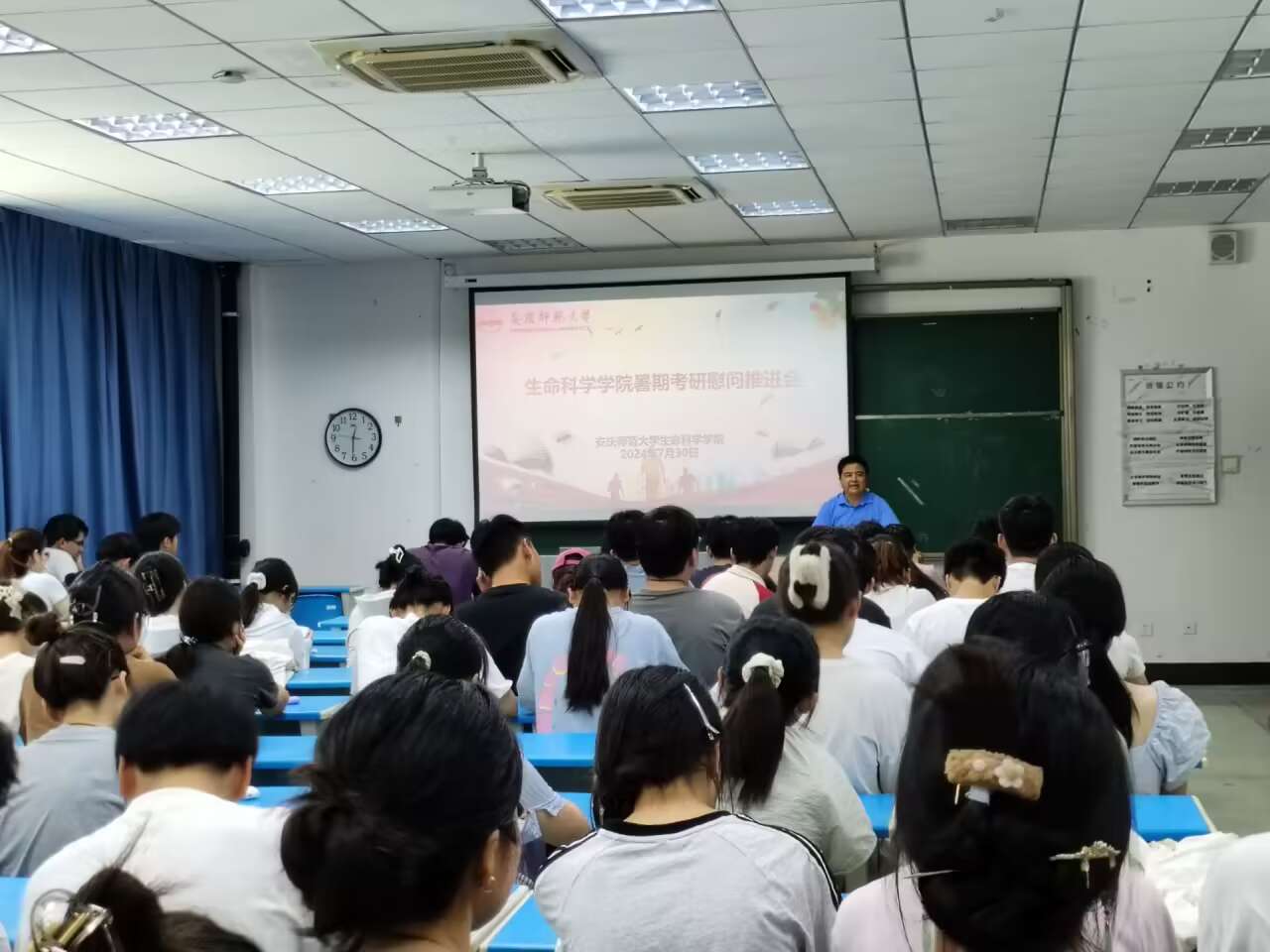 7月30日,生命科学学院在G103举办考研工作推进会暨暑期慰问会,深入了解留校考研学生的思想动态和学习生活情况,不断推进“五段推进+三率共抓”的考研支持服务体系走深走实。学院党委副书记张辉和团委负责人参加会议。