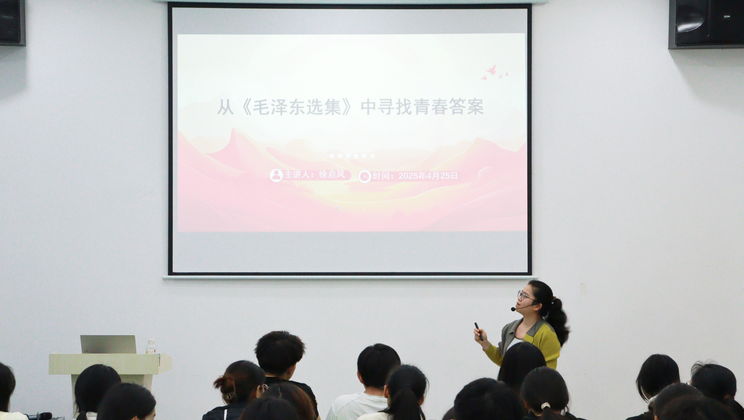 课程最后,徐启凤呼吁大家精读《毛泽东选集》的文章,深入体会其思想精髓,并加深对文章的理解,提升思想深度,并且鼓励大家积极进行调查研究,提高实践能力,为校园发展贡献智慧。