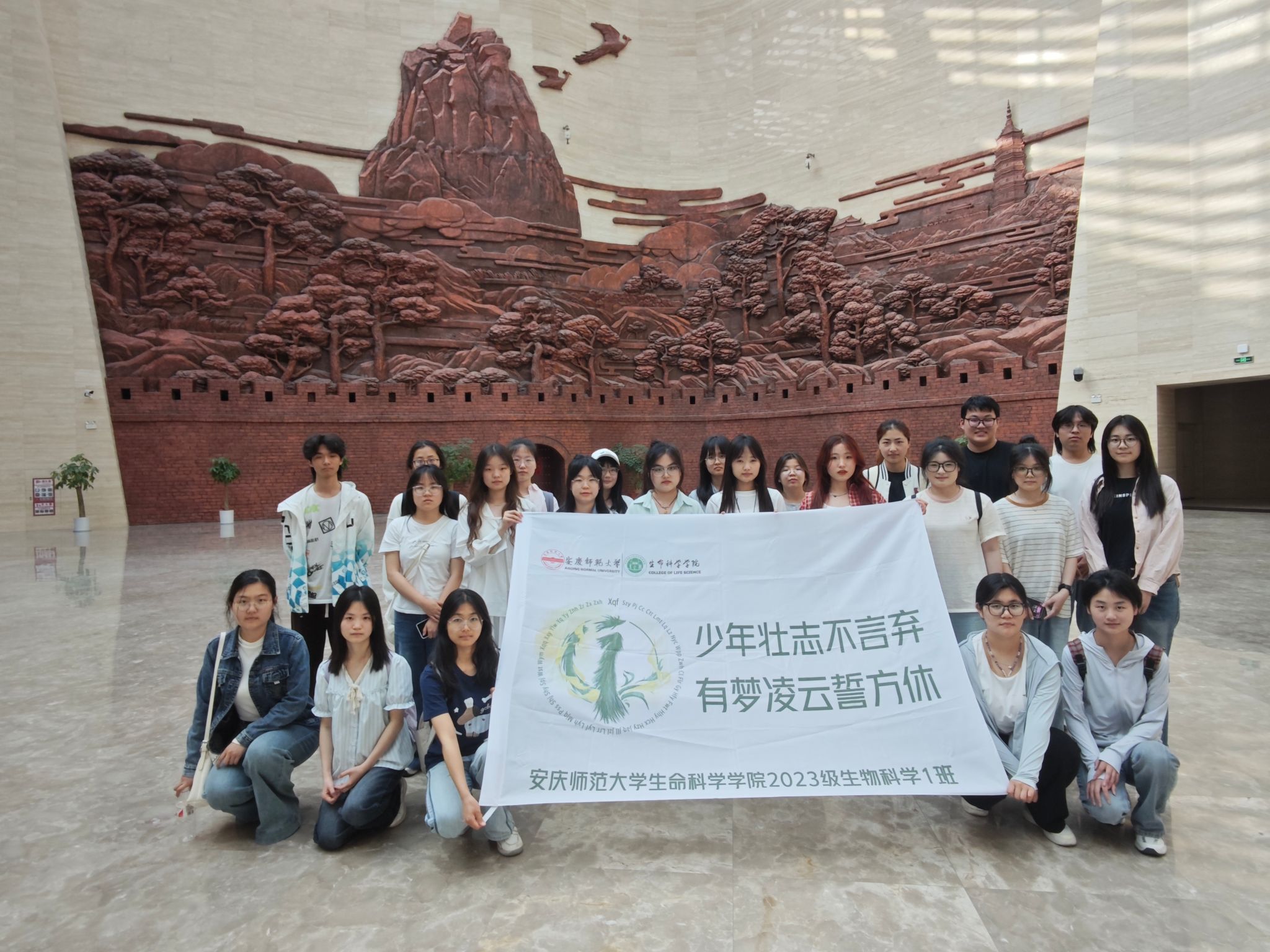 4月18日,2023级生物科学1班(卓越教师班)开展“传红色基因 增文化自信”的主题团日活动,踏上了前往安庆博物馆和独秀园的文化探索之旅,于岁月的长河中寻迹文明,在同窗的相伴中凝聚情谊。领悟地域文化,增强班级凝聚力与文化认同感。