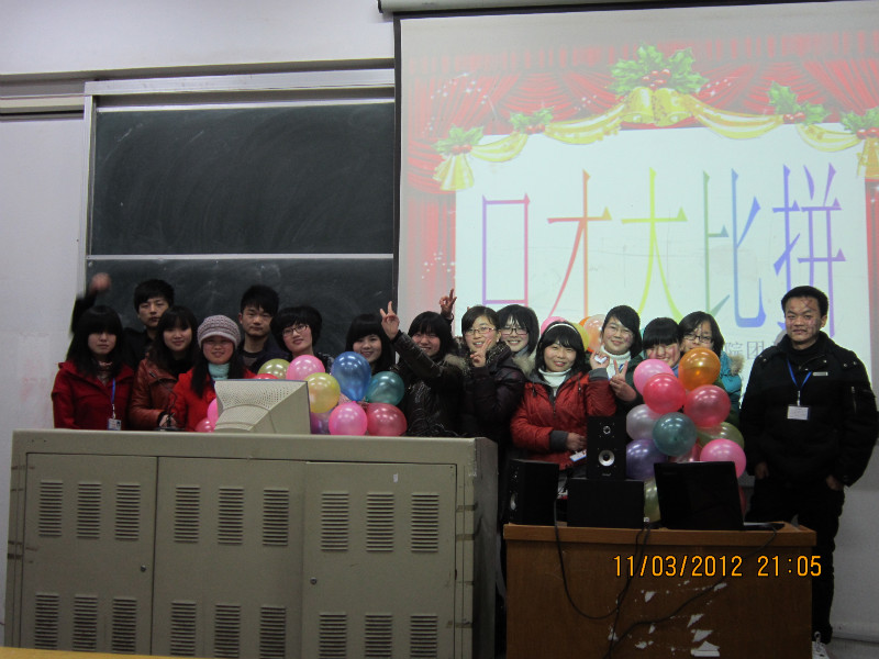 比赛共分两个环节。第一环节由选手介绍所带来的各式各样的物品。选手们各具特色的解说赢得了大家的阵阵掌声。其中一个选手推荐的是统一方便面,以其独特的视角、幽默的语言勾起了观众们的购买欲。随后进行游戏环节,观众们踊跃参与,现场气氛活跃。第二环节是选手们二人分组,依次上台,从工作人员准备的物品中任选一件,一人陈述其优点,一人陈述其缺点。选手们思维敏捷,辩论激烈,反驳巧妙,给活动带来了高潮。活动历时两个小时圆满结束。其中,10生科二班徐帆同学获得冠军,10级生科一班的魏小娟和11级生技一班的谢成林获得二等奖, 11级园林二班范李节,11级生科1班吴雅伟摘得三等奖。