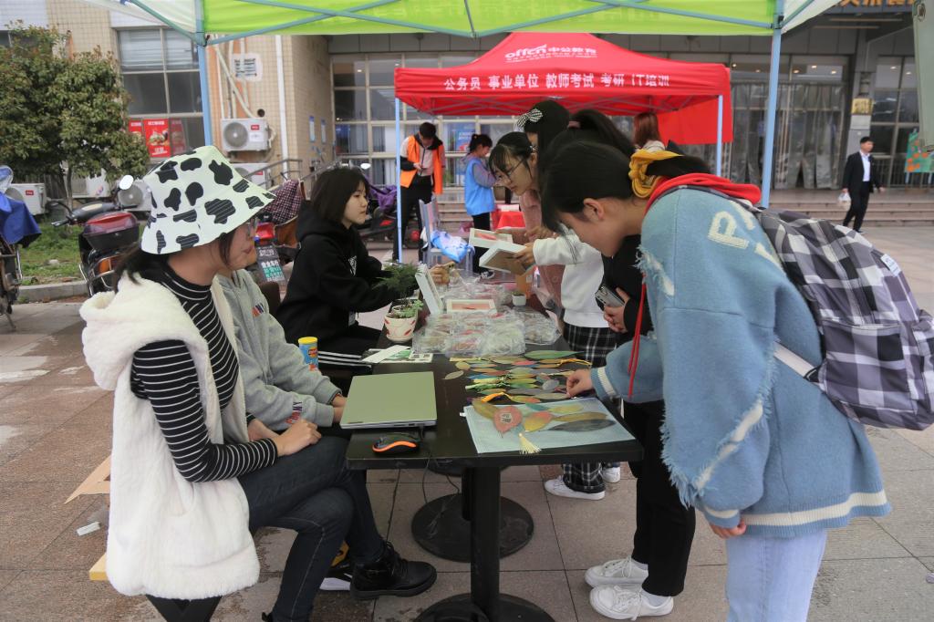 翅膀宛如两片落叶的枯叶蛱蝶,被染成五颜六色的叶脉书签,还有多种多肉植物和花卉盆栽……这些统统都出现在“学雷锋”志愿服务活动的义卖环节。据了解,大部分出售商品都由学院师生共同制作。