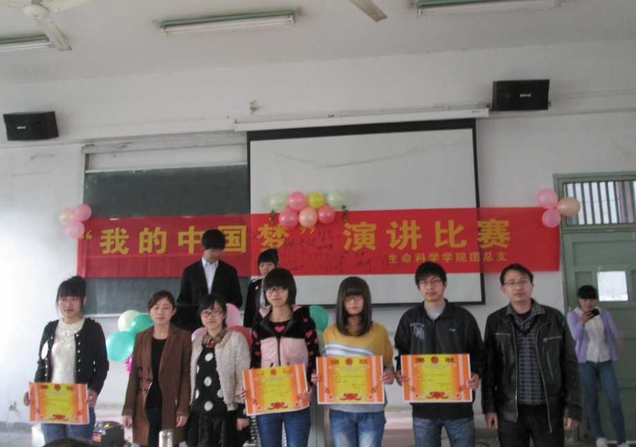 为了深入学习贯彻习近平主席“中国梦”思想发言,增强当代大学生的爱国主义精神,提高学生综合素质,丰富校园生活。4月10日下午,生命科学学院在菱湖校区教学楼215教室成功举办了“我的中国梦”演讲比赛。此次大赛邀请了生科院数位老师担任评委。