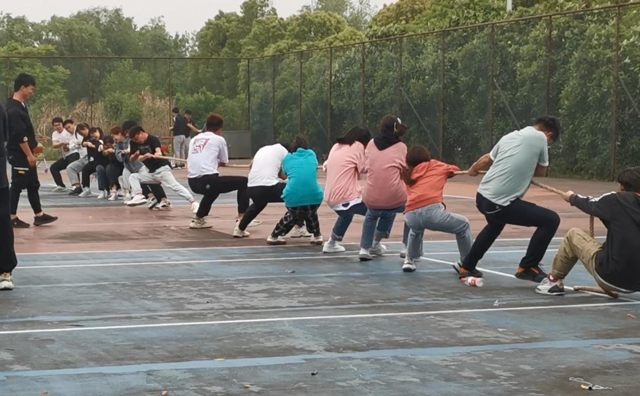 下午14:00,全班同学在南门网球场进行了素质拓展活动,活动包括三人四足、踩气球小组赛、珠行万里、跳绳、拔河团体赛五个项目。同学们踊跃参加,每个组都齐心协力、团结合作。最终吴赞同学带领的队伍获得胜利赢得奖品。