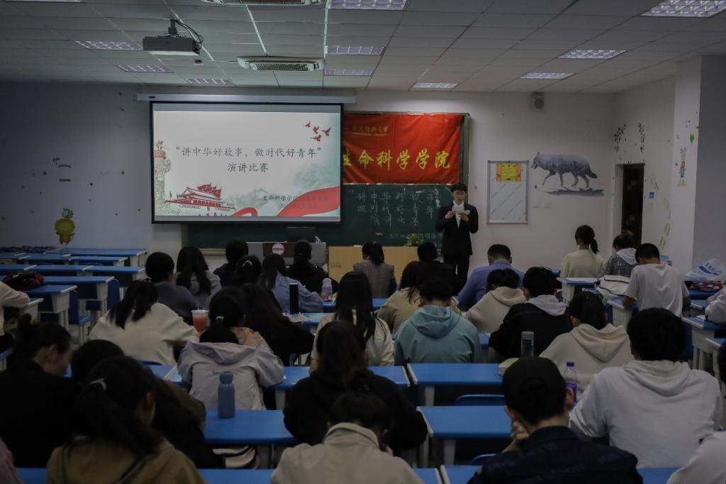 为学习党领导中国青年运动的光辉历程,弘扬主旋律,传播正能量,引导广大青年坚定跟党走、建功新时代。4月18日晚,生命科学学院在G107教室举办“讲中华好故事,做时代好青年”主题演讲比赛。本次比赛由学院辅导员江转转、徐启凤、龚莉、陆天雨等担任评委。共有19名选手参与此次比赛,吸引近百名同学前来观看。