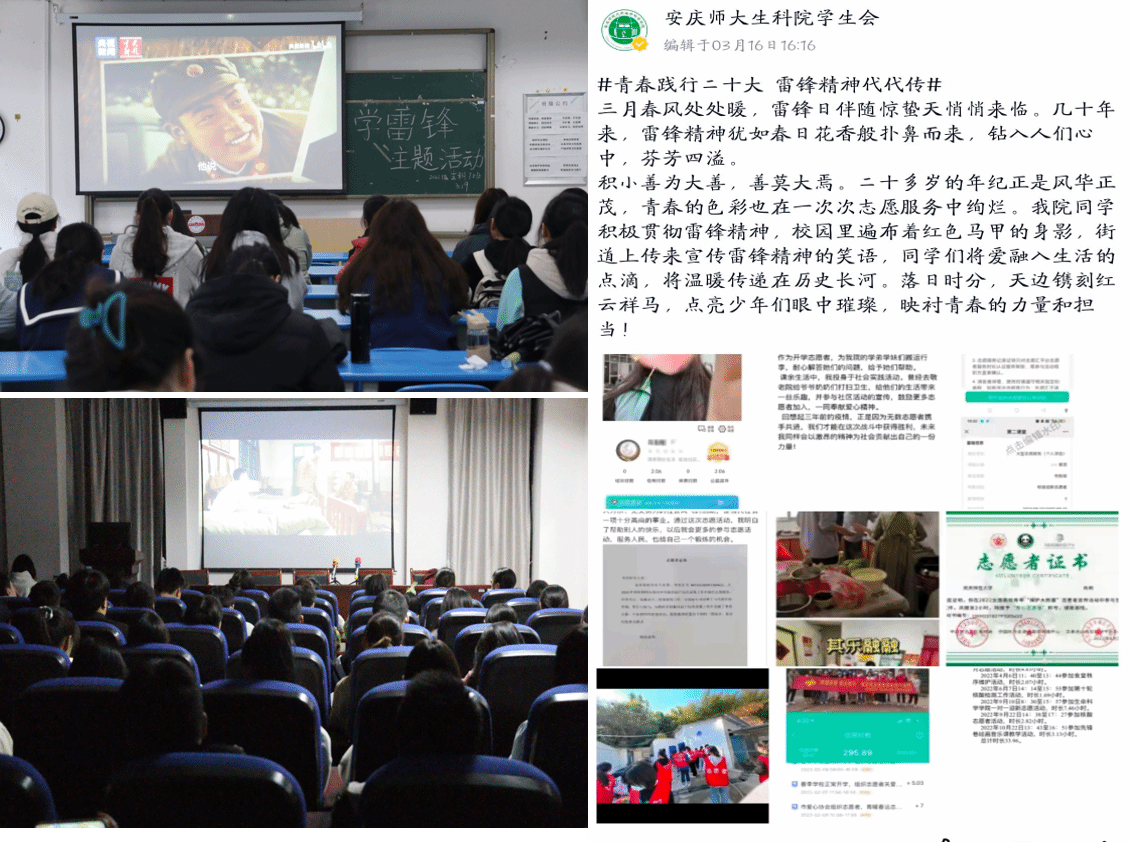 成为校级迎新志愿者、跟随志愿服务队前往养老院、寒假时成为春运志愿者……百余名学生将自己的志愿服务经历投稿至学院账号,与全体学生一同分享。3月14日至27日,依托官方账号,生命科学学院定时更新学生的志愿服务经历,让学生发现身边的“活雷锋”,从朋辈间汲取力量。