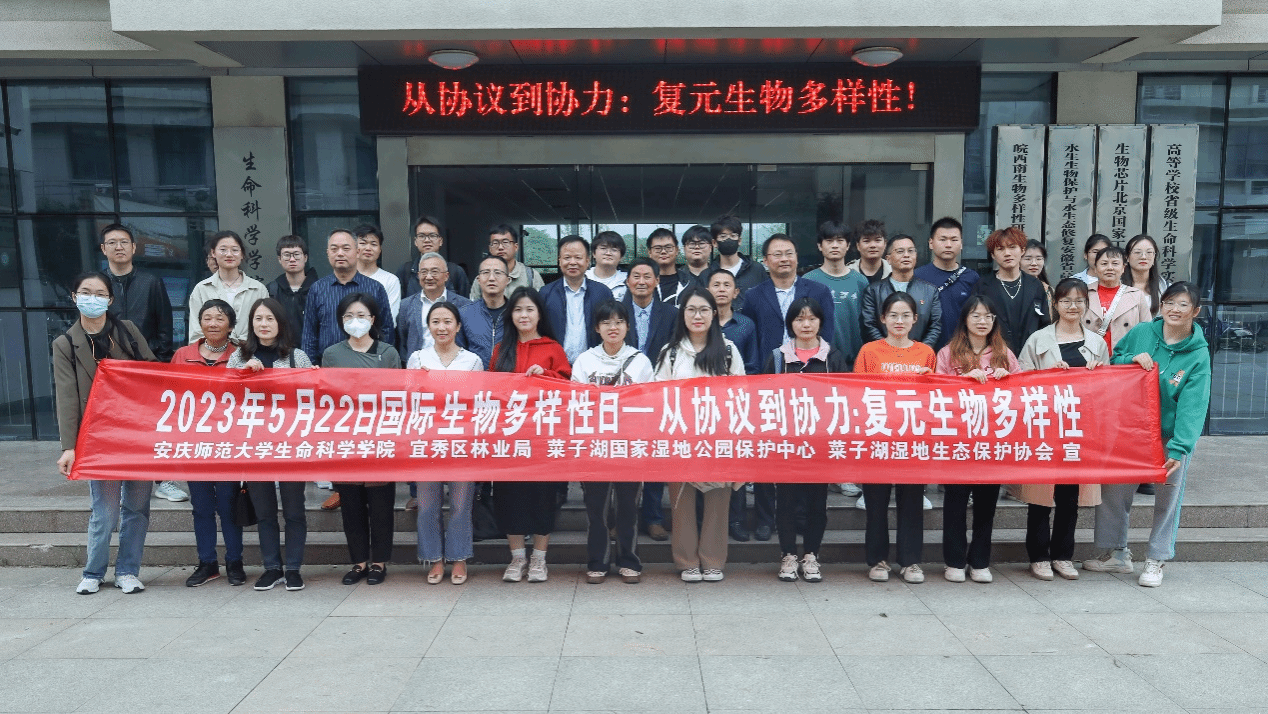5月22日,生命科学学院与菜子湖国家湿地公园保护中心联合开展“国际生物多样性日”宣传活动。院党委书记朱昌流、院长周多奇等学院党政领导、安庆菜子湖国家湿地公园保护中心干部职工代表、宜秀区林业局、安庆菜子湖湿地生态保护协会会员代表出席,生命科学学院生态俱乐部全体成员、志愿者代表、部分师生代表参加活动。