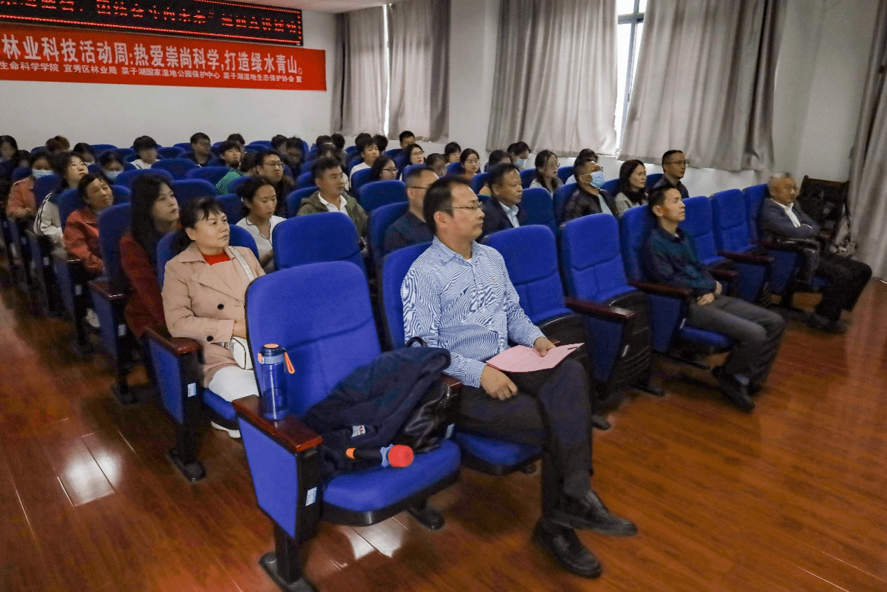 活动以“热爱崇尚科学,打造绿水青山”为主题,邀请了安庆菜子湖湿地生态保护协会名誉会长王三益、安庆市菜子湖国家湿地公园保护中心总工王付红和安庆市宜秀区林业局森防站站长周宏作为讲授人,分别就湿地守护、外来有害物种防治及松材线虫病防治三个方面作出详细介绍。