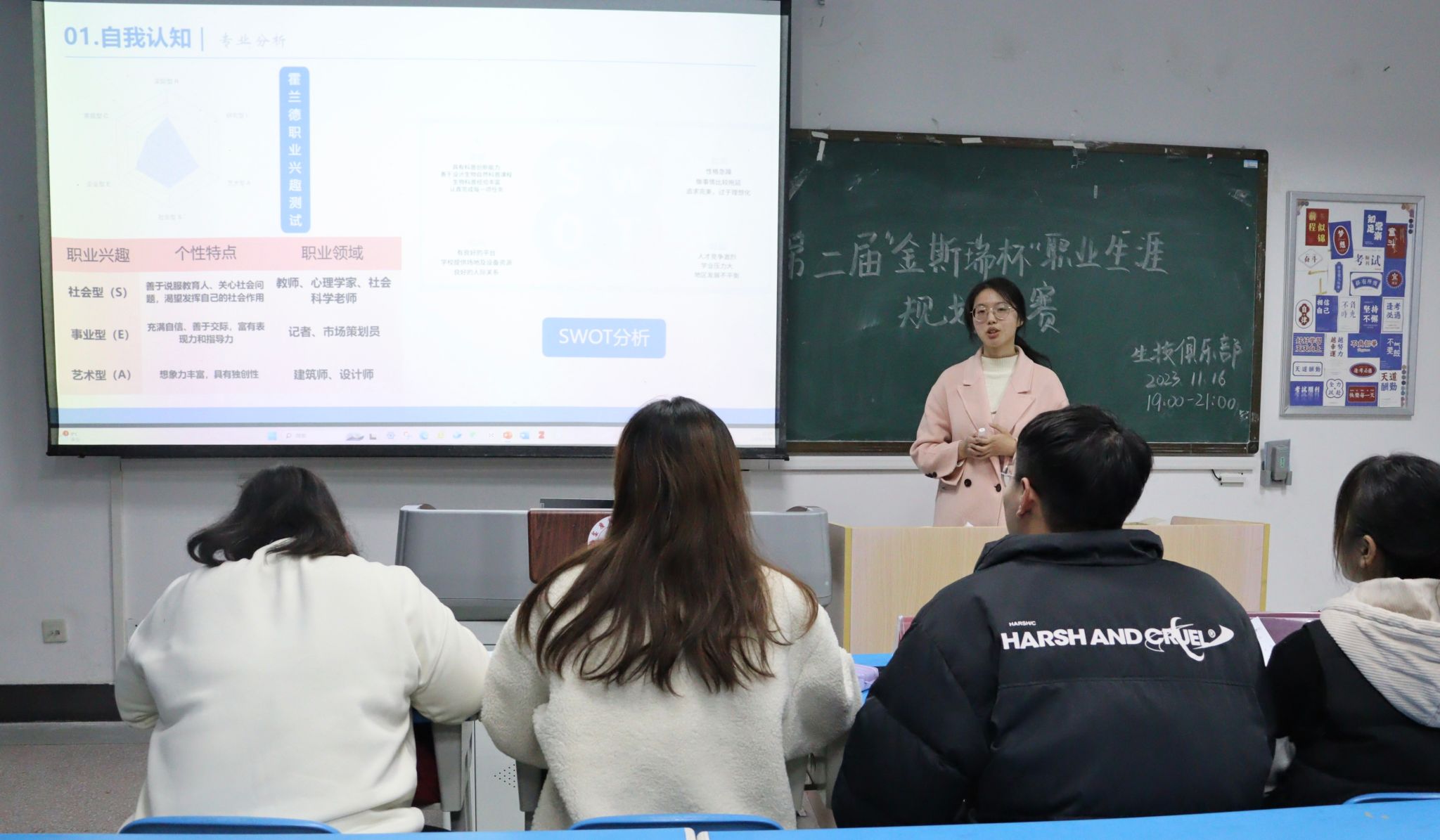 11月16日,生命科学学院特于生科楼104室举办“金斯瑞杯”职业生涯规划大赛,进一步增强大学生对职业生涯规划的意识,引导广大学生合理规划学习和生活,提高实践、创造、就业能力,树立正确的世界观、人生观、价值观、就业观和创业观,近百名同学参与活动。