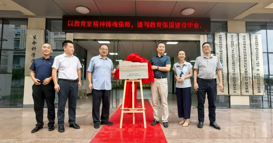 9月10日,我校与安庆市农业农村局在生命科学学院共同举行“安庆市长江水生动物疫病防控监测区域中心”揭牌仪式。安庆市农业农村局副局长王辉出席仪式。仪式由生命科学学院院长吴彦主持。渔业渔政办公室、水产技术推广中心站负责人,我校科研处、服务社会经济发展处、生命科学学院和安庆市长江水生动物疫病防控监测区域中心负责人参加仪式。