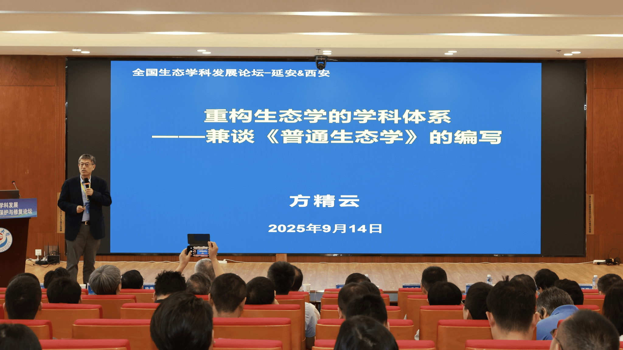 开幕式上,延安大学校长奚家米、西安建筑科技大学交叉创新研究院院长王登甲分别致辞,国务院学位委员会生态学学科评议组召集人、中国科学院院士方精云出席开幕式并以“重构生态学的学科体系——兼谈《普通生态学》的编写”为题作主旨报告。国务院学位委员会生态学学科评议组专家——浙江大学方盛国教授、云南大学段昌群教授、北京大学唐志尧教授等先后作专题报告,分享最新研究成果及各高校在生态学科建设与人才培养方面的实践经验。