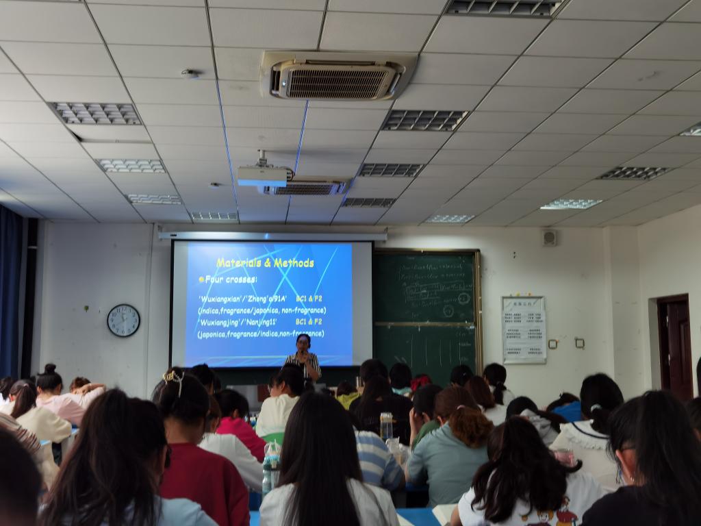 通过此次报告,使学生们了解了功能基因图位克隆的理论、水稻BAC文库的构建以及基因文库的筛选方法等。报告结束后,部分学生就其感兴趣的话题与吴娟老师进行了更深层次的交流。本次报告不仅是一次对专业理论知识的具体应用,更是激发了学生对专业的兴趣,拓展了学生的视野。(撰稿:吴娟;摄影:王意;审核:张辉)