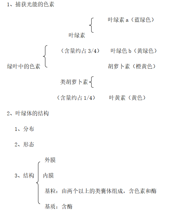重点总结捕获光能的色素有哪些,叶绿体的结构,其结构上有哪些特点适用于进行光合作用。