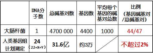 资料3:人类基因组计划测定的是24条染色体(22条染色体+X+Y)上的DNA的碱基序列。其中,每条染色体上有一个DNA分子。这24个DNA分子大约有31.6亿个碱基对,其中,构成基因的碱基数占碱基总数的比例不超过2%。