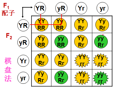 孟德尔用纯种黄色圆粒豌豆和纯种绿色皱粒豌豆作亲本进行杂交,无论正交还是反交,结出的种子F1是黄色圆粒的。