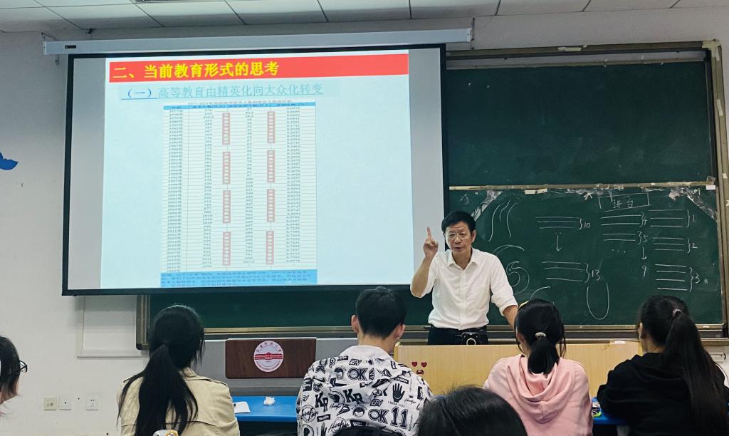 朱老师以“如何教老奶奶学会打麻将”的问题出发,对比分析了传统教育与教改下的教育的区别。随后让同学们分组讨论分享自己印象中上过最差和最好的课,以此介绍传统的三种师生关系并分析其利弊。朱老师就当前教育形式也做出了思考,提出现在高等教育由精英化向大众化转变、基础教育由应试教育向素质教育转变、课堂由教师主导向学生主体转变。提出传统教学中“我教你学”、“我讲你听”的教育理念应转变为现代教学中“你教我学”、“你教我听”的教育理念。